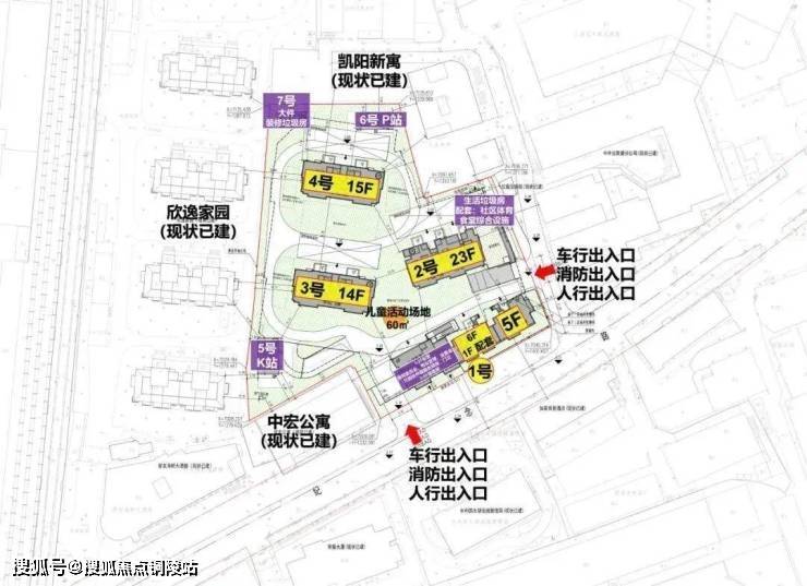 2号楼23层高层,3号楼14层,4号楼15层,2号楼的东北角是生活垃圾房,社区体育配套,食堂综合设施;