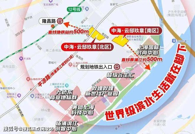 【中海·云邸玖章售楼处电话:400-9699-334✨【官方认证】✅✅✅】距离地铁12号线隆昌路站直线约500米,步行可达,这在杨浦滨江一众不靠轨交的项目中是非常难得的。进站后4站可达北外滩,7站陆家嘴,8站通达人广。