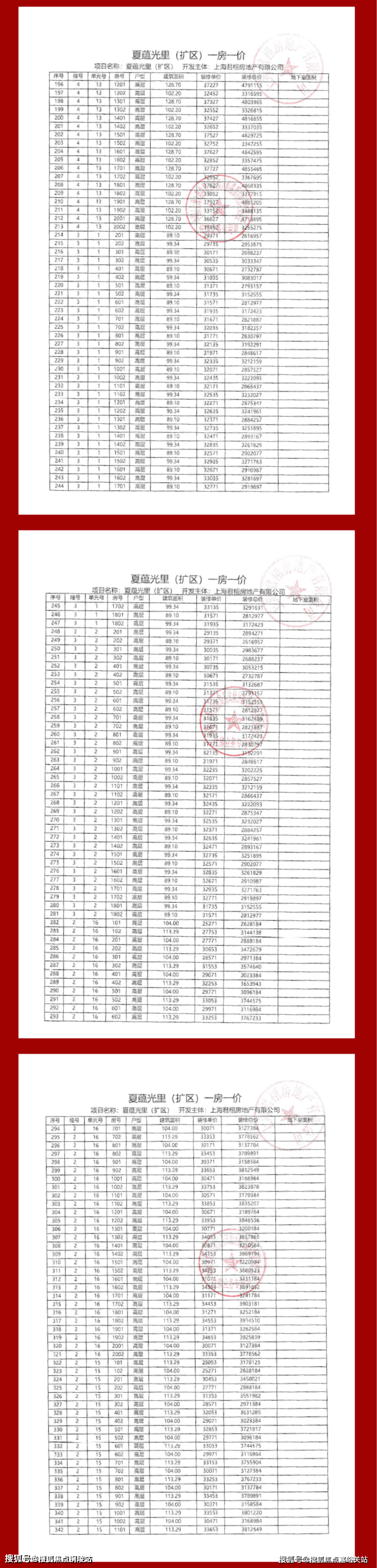 项目一房一价表