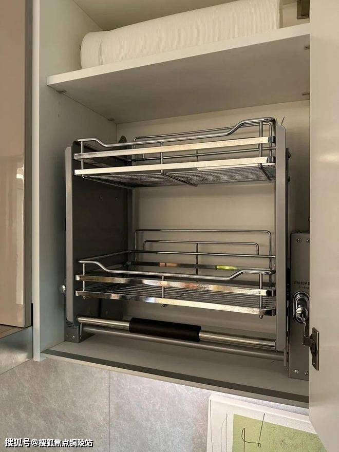 橱柜作为强功能性的收纳系统,自然少不了操作性能上的考究,吊柜做了升降式的拉篮,以后再也不用爬上高凳拿取了!
