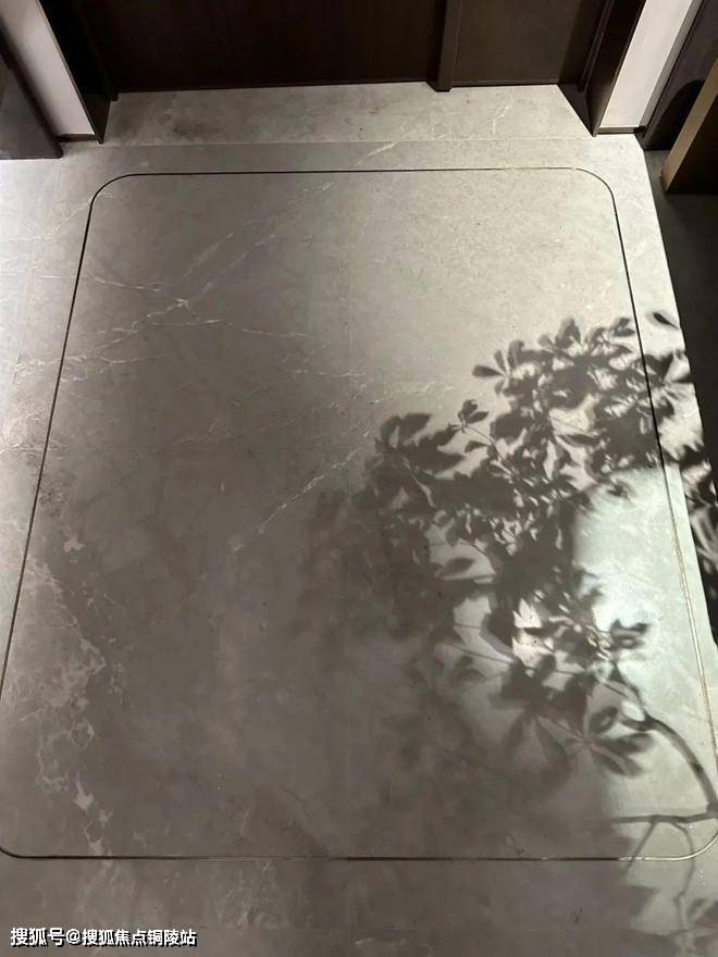 这个是入户玄关处的地面,大理石地面搭配金属线条勾勒出玄关地界,归家的氛围感从这个区域就开始了!
