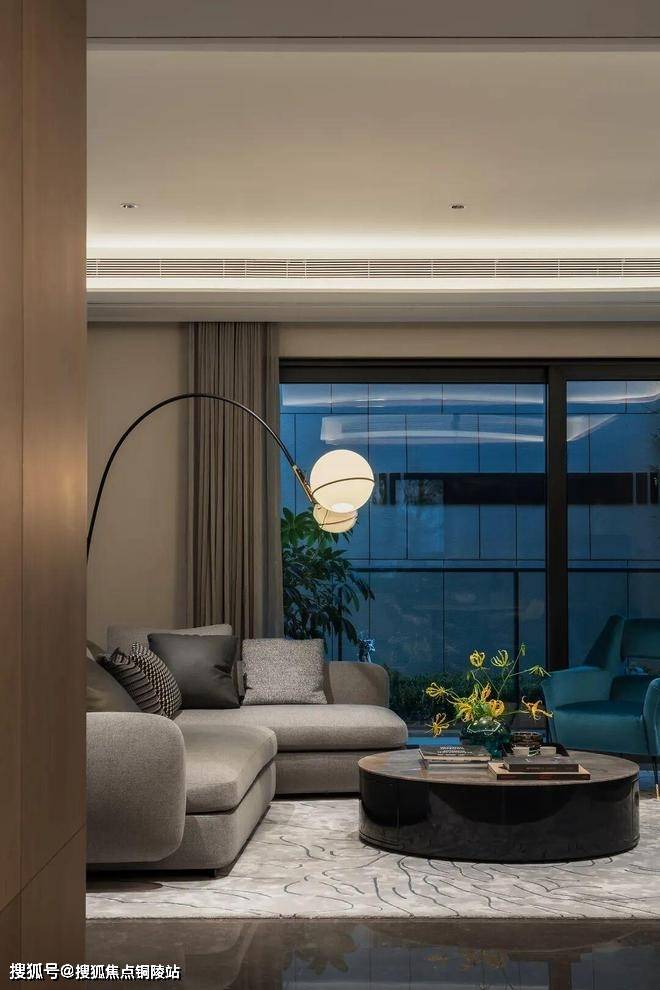 甚至于抬头所见,吊顶都做了多处圆弧形处理——只是为了不过份尖锐,柔化边缘,让视觉看上去多有变化,弧线的协调往往能带来一种独特的、百看不腻的美感!