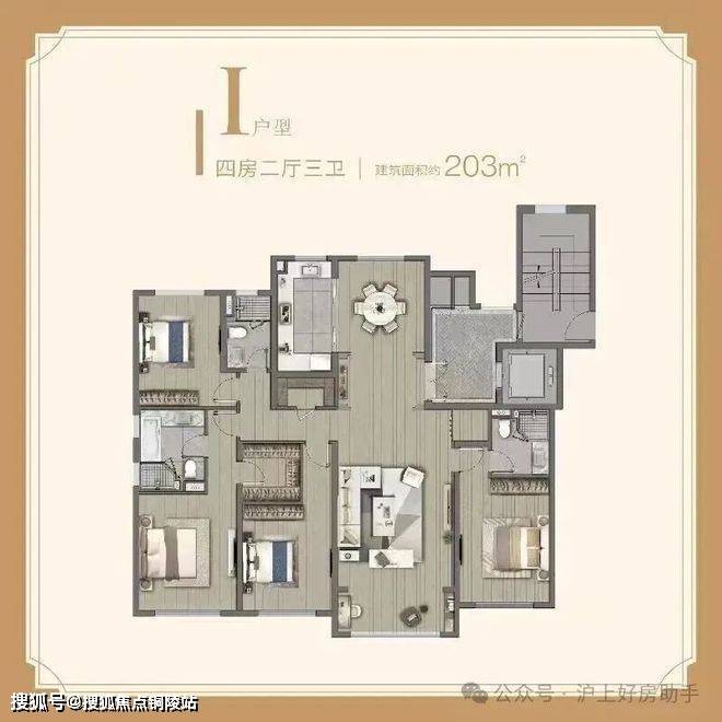 【建面203㎡4居】1700-1900万,4室2厅3卫, 南朝向,楼栋分布于10号楼