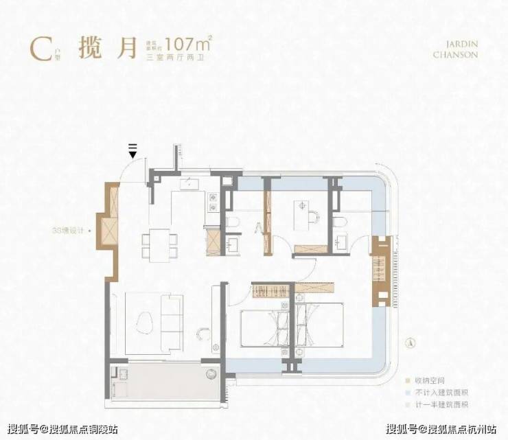 不夸张的讲,这个建面约107㎡刷新了我对百平三房的新认知,据悉该户型或将申请专利,我认为实至名归!