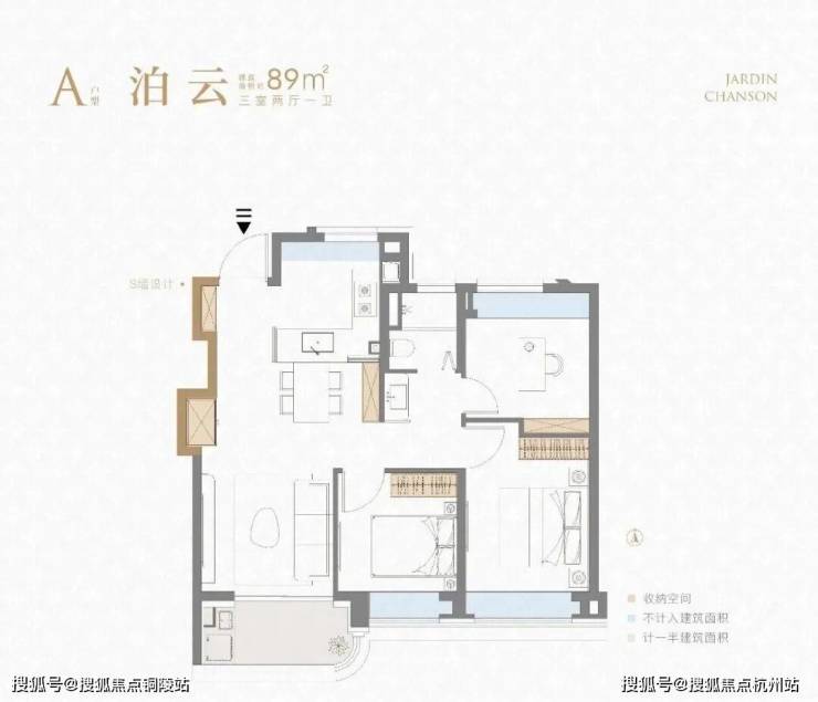 重点我想说说该户型的收纳,大量S墙的设计简直见缝插针,极大的扩容了家的储物角落,消减了业主生活的繁琐。