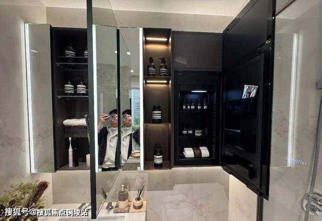 而大华是通顶整面镜柜,美妆冰箱和储物区完全分开,女生的护肤品、全家的洗漱用品全能放下,这才是真的实用。