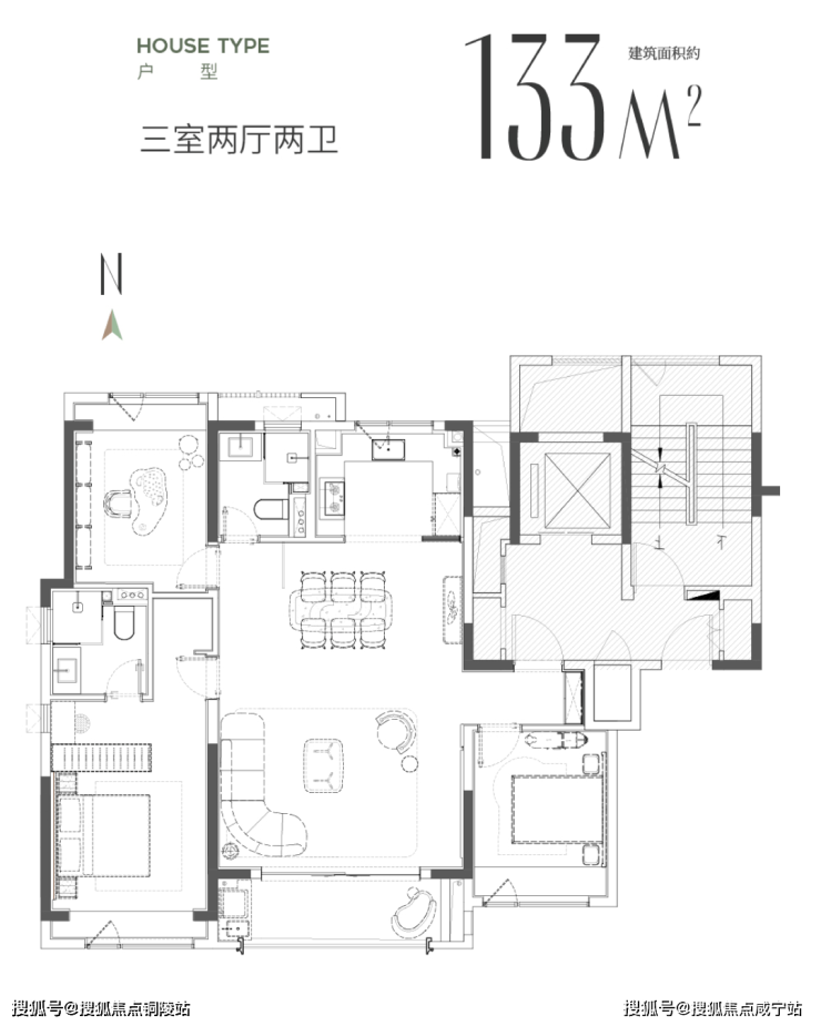 建面约133㎡户型▼
