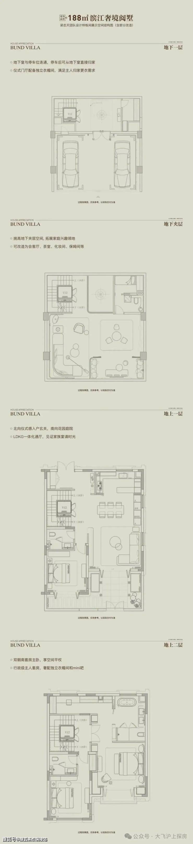 以“全两层+会所”的形态革新、花园露台地下室的全维空间、大面宽短进深的奢适格局,重构别墅生活场景.