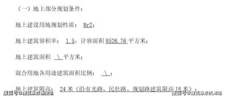 根据出让内容,该地块建筑面积只有约8526.76㎡,容积率为1.5,地上建筑限高为24米,其中沿市光路、民壮路、规划路建筑限高18米。