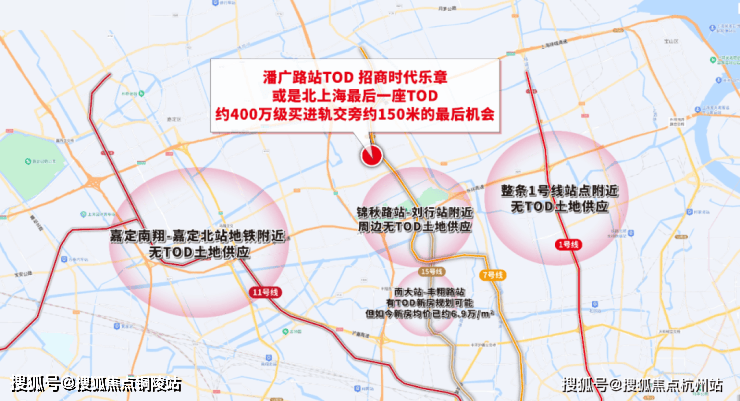 纵观整个北上海的所有400-600万级置业地的轨交站点,还有条件建造TOD、建造直线约150米进站轨交盘的土地,寥寥无几甚至不会再有。