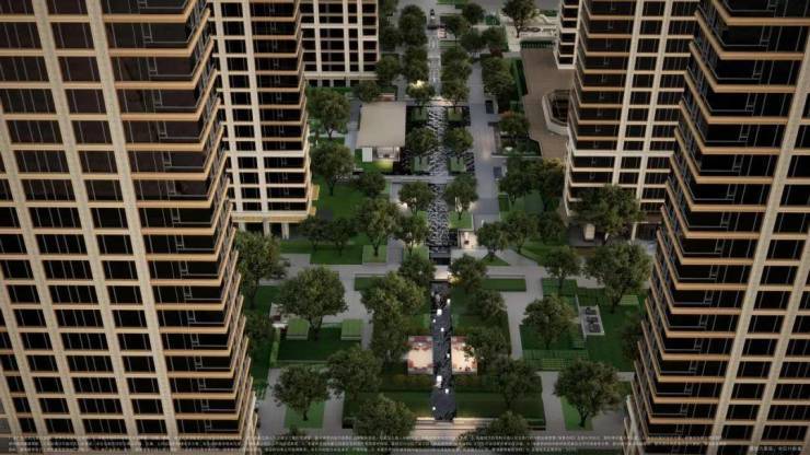 让理想在自然中生长:约275米的中央景观轴从蓝图照进日常,成为推窗即见的风景。8#楼栋坐落于双轴交汇处,视野极佳,树影、天空与都市天际线在眼前平铺开来。