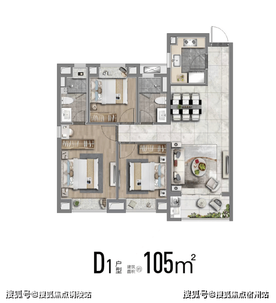 正三房设计,无论是98㎡精奢三房,还是113㎡舒适性三房,空间的尺度感十足,坚持不缩水。从主卧、到老人房、儿童房,每个人都有自己独立的空间。