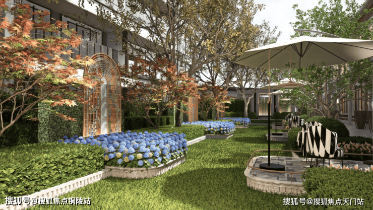 海派生活轴的端点是邻里交互的艺术花园,是业主茶余饭后散步的好去处。