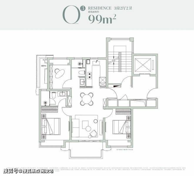 99-100㎡三房两厅两卫:经典飞机户型,LDK 一体化布局,采光通风俱佳,适配三口之家,总价约 1150 万起。