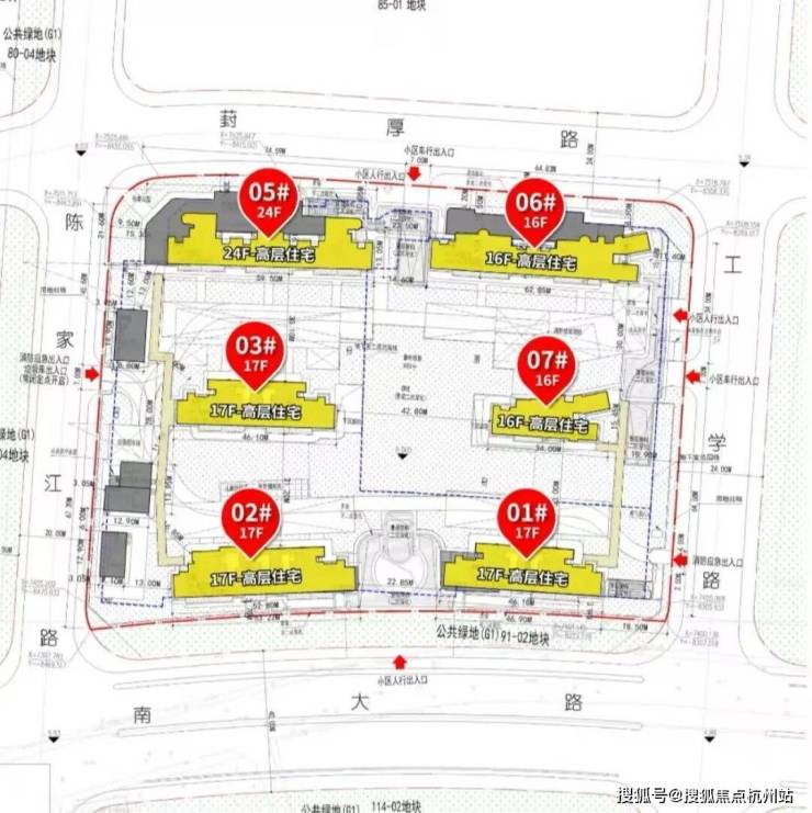 根据设计方案显示,该地块拟建5幢16-17F高层住宅、1幢24F高层住宅以及若干社区配套用房,共计规划约436户。