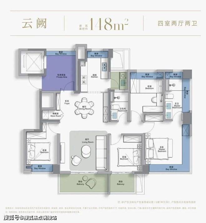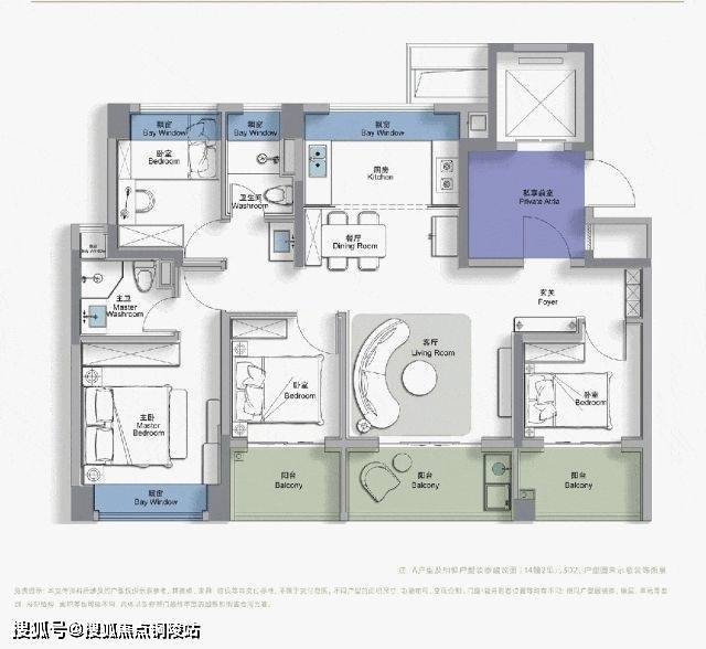 尺度感上:这是新政后松江板块首个四开间朝南、且不封阳台的三阳台户型。
