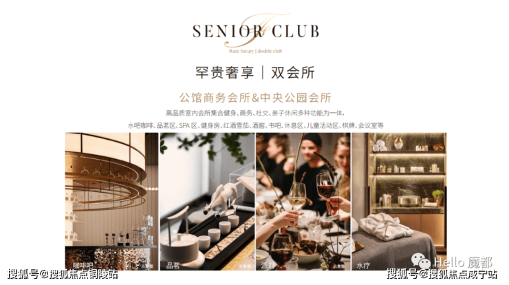 中央公园会所和公馆商务会所,中央公园会所里面有泳池、健身房、瑜伽室、儿童游乐园和休息区;而公馆商务会所则是上流社会的社交场,有咖啡区、品茗区、spa区、红酒雪茄、ktv、会议室私宴厅等。