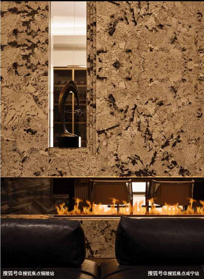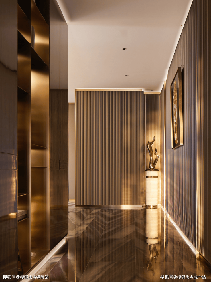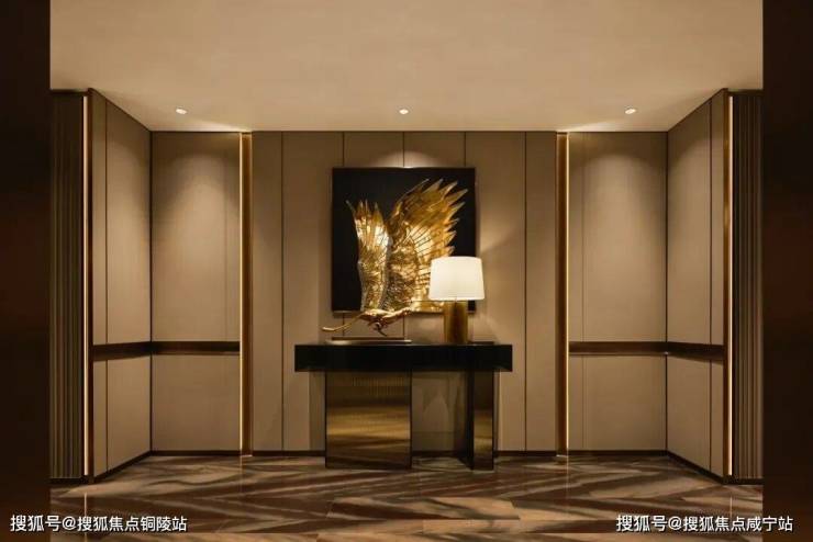 这份体验从电梯厅开始,地面采用奢石拼花,虚实结合的造景将归家仪式感发挥到极致。