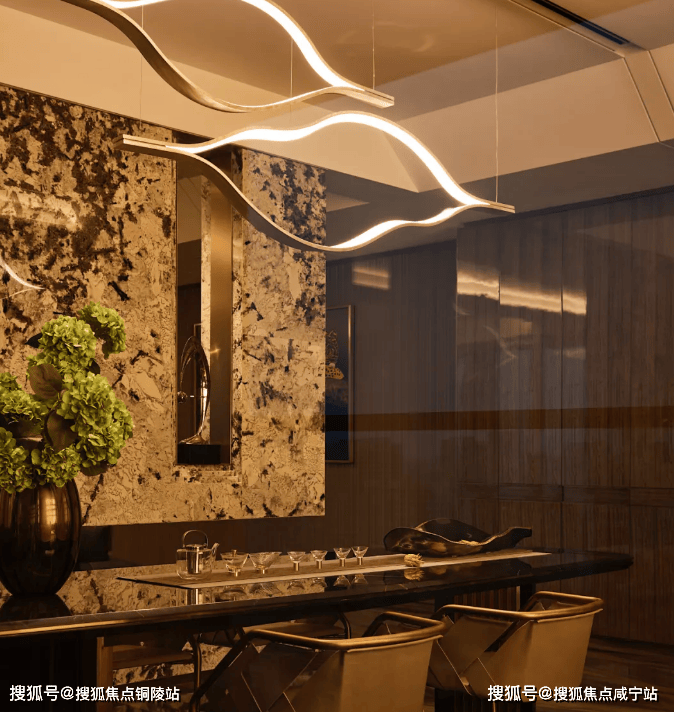 品茗区蜿蜒精致的艺术吊灯,在茶室空间的上空以及金色光影的映衬下,更有了一丝空间的灵动感,座垫编织双厚度皮革杜兰戈结合金属一起,将整体空间的低调奢华隐隐呈现。✅古北壹号公馆售楼处电话:400-8787-740