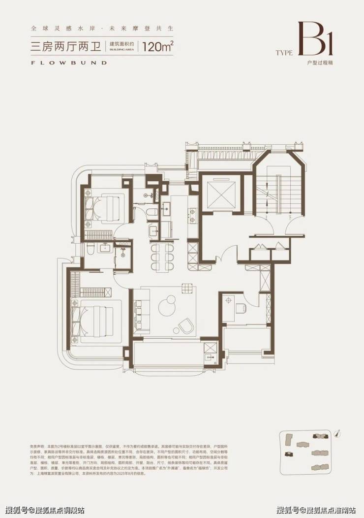 建面约120㎡的大横厅、双阳台产品,并没有勉强去做4房,而是打造了一个超宽绰的3房产品。
