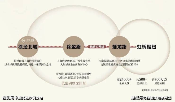 大华·望樾占据徐泾发展热土正核, 距离17号线徐泾北城站仅约80米,1站徐盈路站的世界级TOD城市综合体、2站蟠龙路站的江南水岸商业中心、3站国家会展中心、4站虹桥枢纽, 圆满城市精英生活的丰盛诉求。