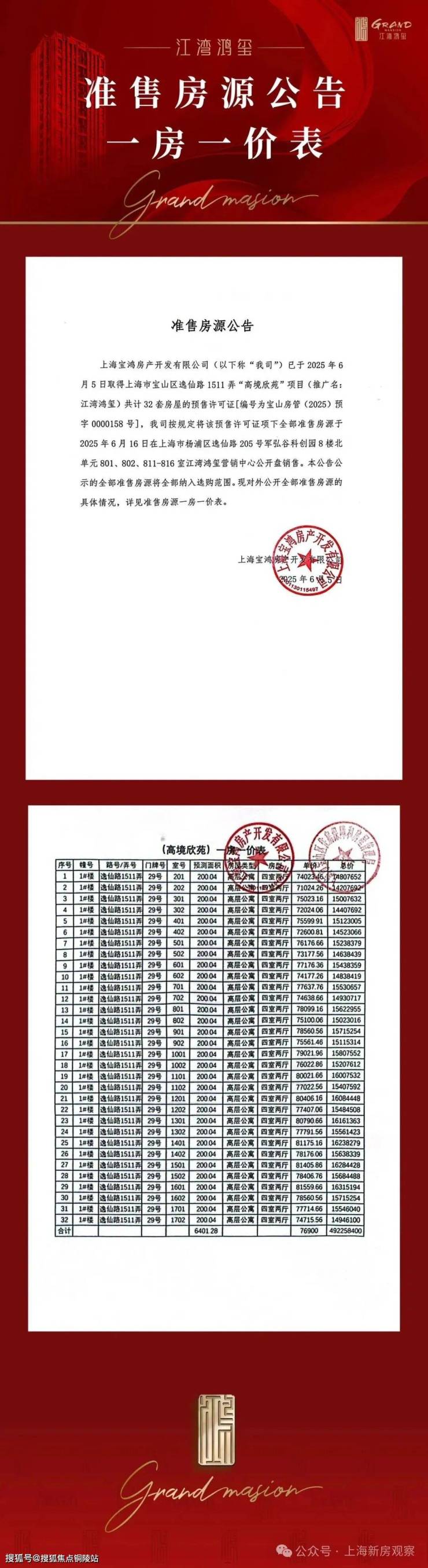 3号线殷高西路地铁口「江湾鸿玺」建面约200㎡大平层,均价7.69万/㎡!!