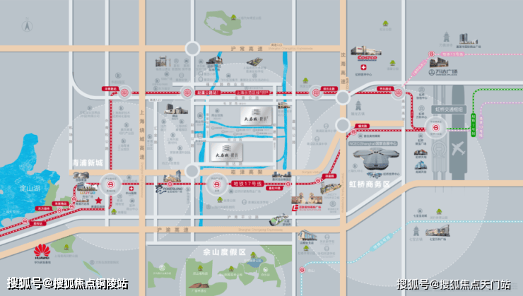 交通方面大名城映辰位于崧泽高架旁,东联大虹桥,西接青浦新城,链接长三角一体化示范区。直线距离约800米抵达上海示范区线(在建)