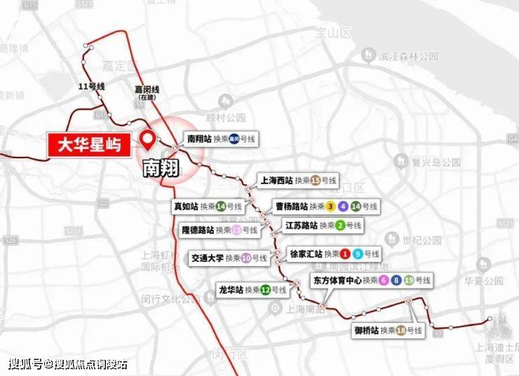 但南翔是11号线和嘉闵线的交汇点,本质是承担资源交汇的中心枢纽,在能级上就碾压其他外环附近板块。