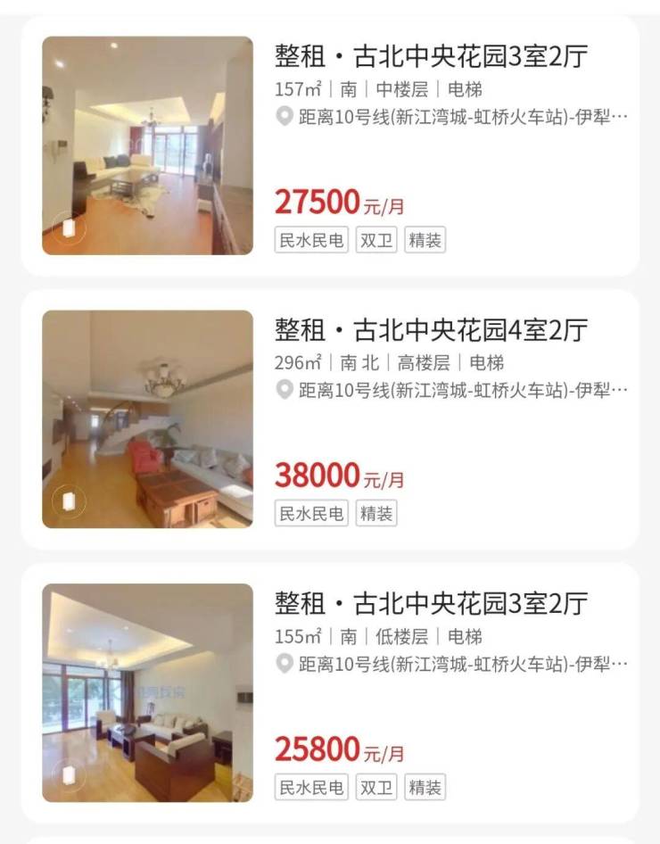 就在租赁市场普遍不景气的当下,古北130m²户型租金也在24000元/月。