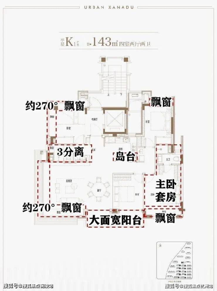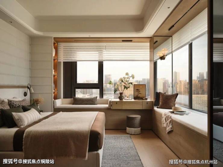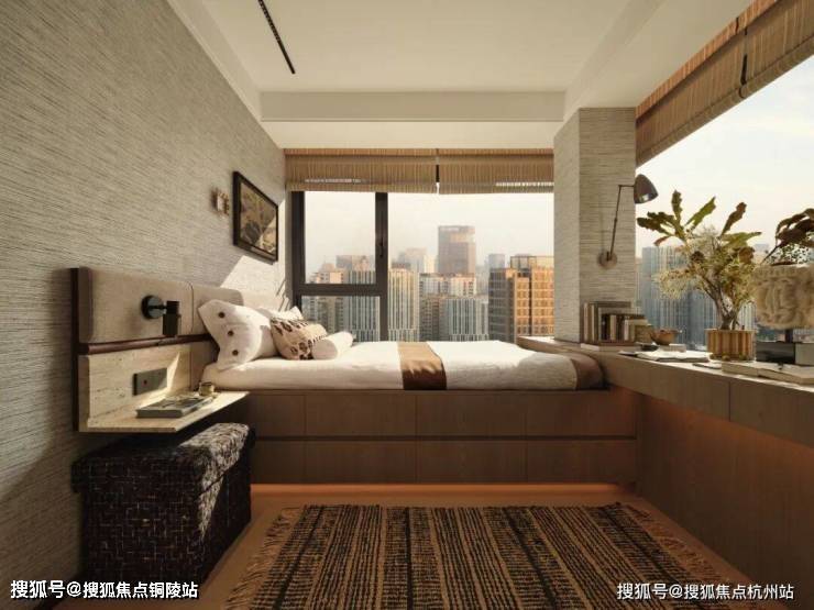 四季隐秀售楼处电话:400-8080-420 主卧配备约270°飘窗,视觉延展感极强,整墙衣柜收纳无忧,独立卫生间保障私密,构筑男女主人的舒享套房。