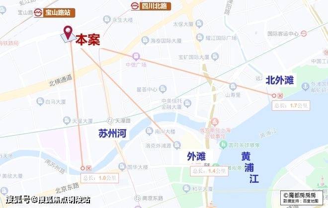 仅从图上看,该地块直线距苏州河约1公里,直线距外滩约1.4公里,直线距北外滩约1.7公里,直线距3/4号线宝山路站约300米,直线距10号线四川北路站约560米,区位优势明显。