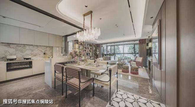 在景观落地窗环绕中,私宴厅以“花廊序列,美学对景”构筑专属的私谧空间,巨型水晶吊灯与浅色饰面的搭配,色彩质感上相得益彰,营造融合艺术、文化与生活美学的奢享感场域,成就令人神往的优雅社交范式。