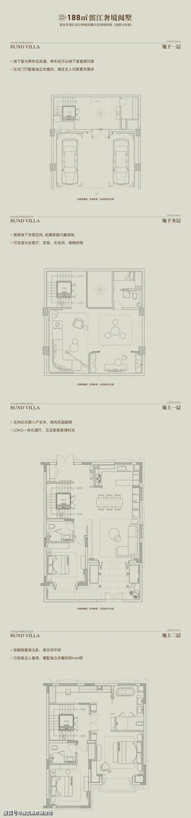 以“全两层+会所”的形态革新、花园露台地下室的全维空间、大面宽短进深的奢适格局,重构别墅生活场景。