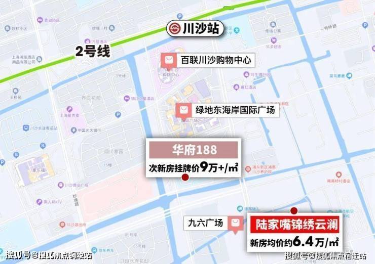 项目位于浦东的2号线川沙站旁约850米(数据来源,百度地图测绘),是个含金量很高的地铁盘.