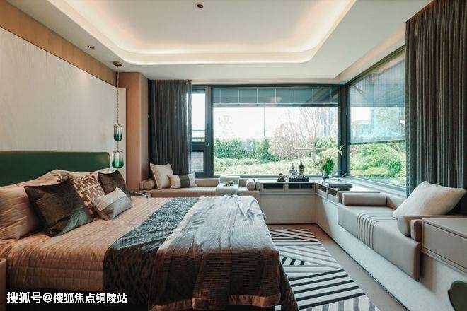 更为难得的是,该户型标配了全屋飘窗,主卧更是拥有270°转角飘窗,拓宽室内景观视野的同时,增加了实际空间使用率,加上三玻两腔系统窗隔音,在欣赏窗外景色的同时,也不会被噪音打扰。