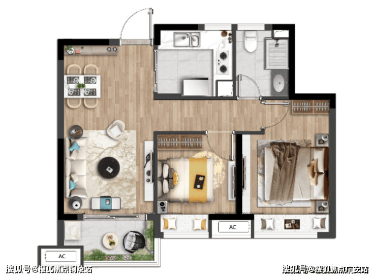 建面约74㎡户型样板间实拍