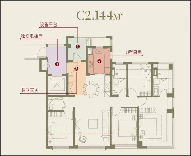 144边套户型:7.4平全明独立电梯厅,实得率超98%,超200m楼间距,视野无遮挡。