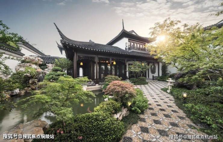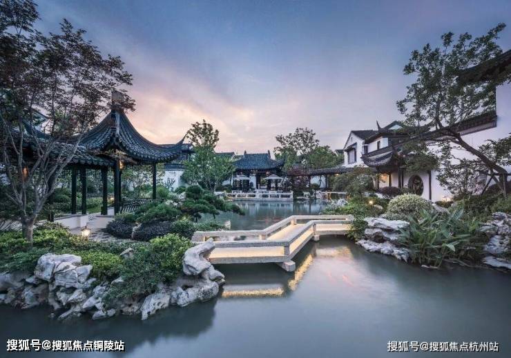 园内设置七处景观组团,以中国各大古典名园为借鉴,并融入宋代的雅致生活韵味。宋式园林更强调“精而造疏,简而意足”,擅以意山水画为蓝本、以画设景,诗词为主题。步履其中,移步换景,步步生趣。花园组团规模扩大,户户有景,各自成趣,或临廊听雨,或观亭赏风,居住更为诗意。