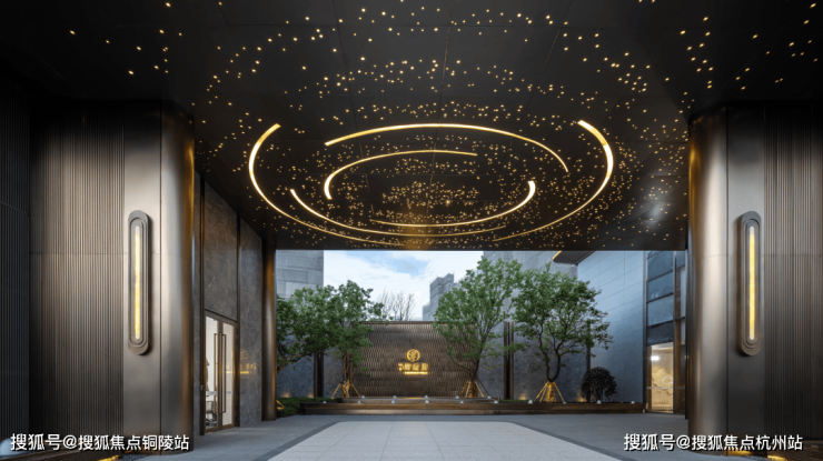 考究社区入口、舒适大堂入口、奢雅会所入口协同构建地上归家体系,艺术地下大堂营造简约轻奢的地下归家体系。