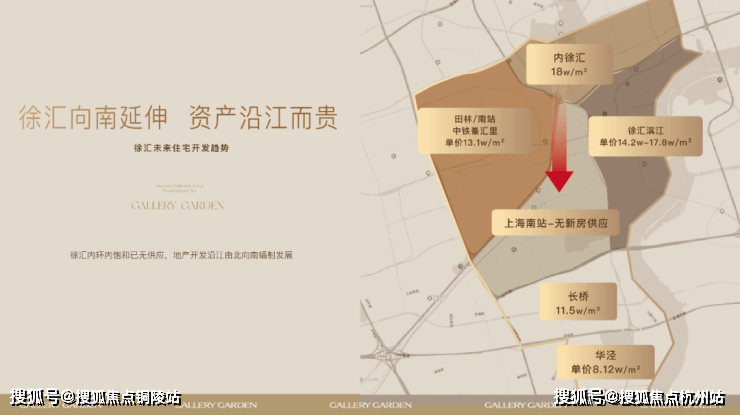 从徐汇开发趋势来看,徐汇向南延伸已成态势。近年来,徐汇作为热门的主城板块,住宅土地供应日渐紧张。随着内徐汇向南延伸,徐汇滨江以绝对实力承接了内徐汇的高单价,而随之南向开发的不断深化,上海南站区域暂无新房供应,而更靠近滨江的长桥板块相较之靠近徐汇腹地的田林、南站板块置业门槛更低,是典型的土地发展红利期。