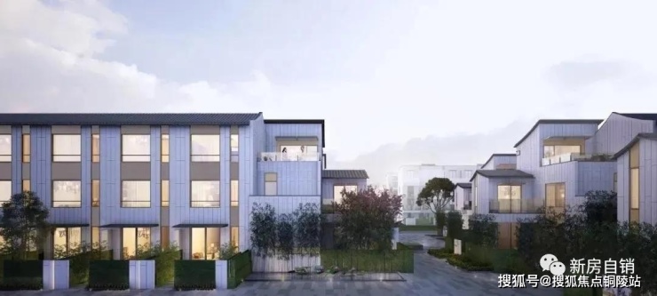 东滩云墅采用现代中式简约建筑风格,主要立面材料选择米白色真石漆,局部铝板及铝合金线条点缀建筑立面,立面简洁统一,强调横向线条,大气典雅。