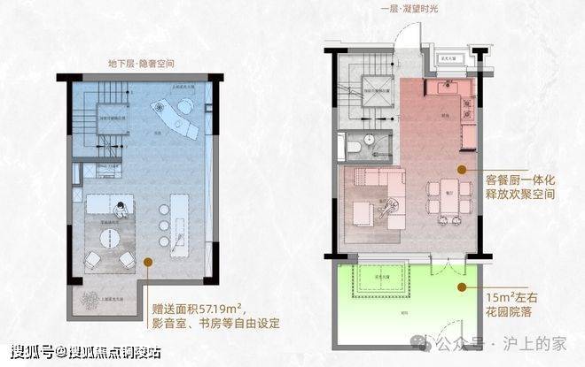 地下室赠送面积57.19m²,影音室、书房等可以自由设定。