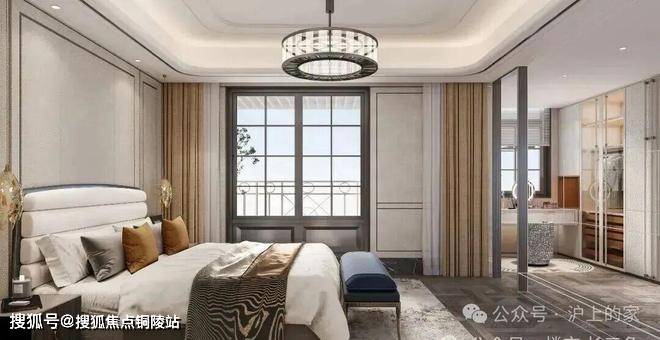 3F主卧的阔绰尺度比肩星级套房,有单独的衣帽间,为业主的生活增添格调。