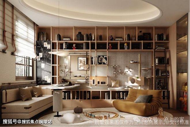 北向有一个灵动空间可随需求切换,孩子小时候是亲子手工区,长大后变为书房,灵活适配家庭成长周期。