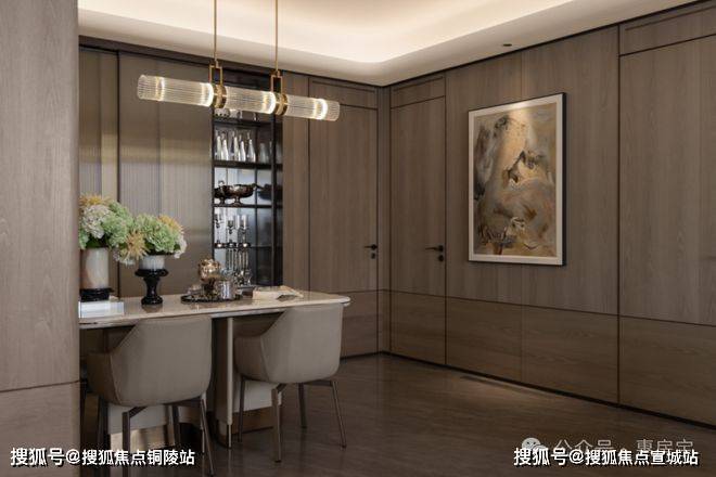 与常规新房室内没有门与墙的生硬拼凑感不同,江湾金茂府通过大量木饰面、隐藏门等细节,形成统一的设计语言,色彩与材质搭配协调统一,尽显整体美感!