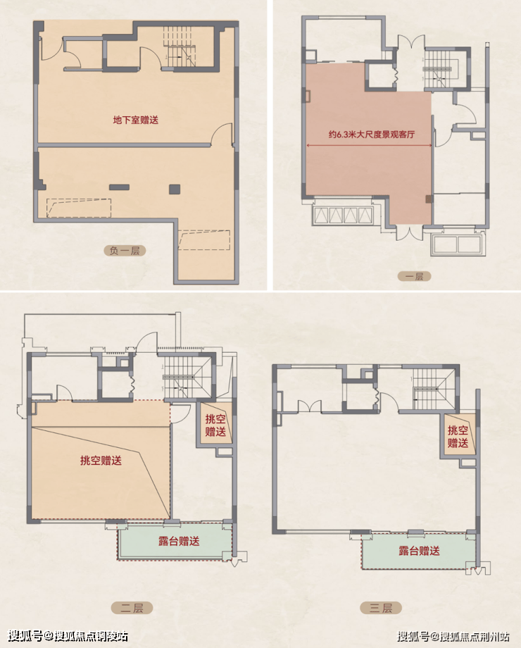 1)205-225㎡联排产品,累计附赠面积约238㎡,实际得房率远超216%!