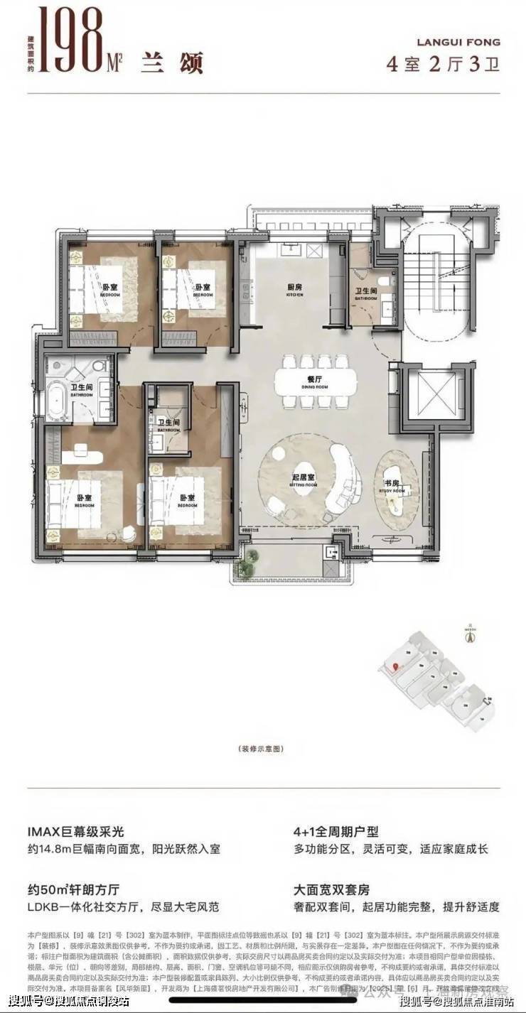 据悉「蘭桂坊855」33席传世宅邸,一席一定制,一栋一永恒,其中18套建筑面积约89-174-198㎡洋房,15席约180-240m²新城市别墅,敬邀全球藏家私赏。建筑面积约198m²4房2厅3卫【海派法式美学样板】现已惊艳亮相共迎品鉴!