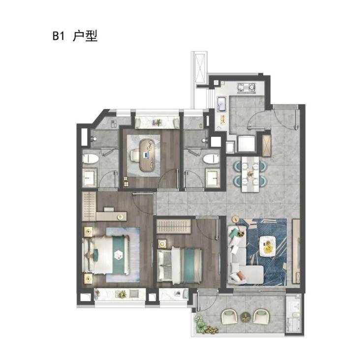 建筑方面,虹桥嘉悦府汲取高级灰经典美学灵感,以珍珠蓝石材、多彩仿石漆、深灰色铝板搭配宽幕玻璃,整体呈现玻璃流幕现代立面,经典永不过时。