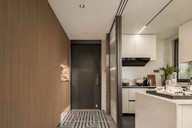 入户门厅以弧形悬浮顶棚为特色,为业主带来柔和温润的归家关怀,让归家的每一步都充满舒适与惬意。