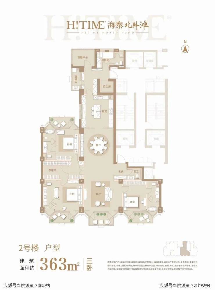 1. 建面约110㎡三房两厅两卫:作为北外滩板块核心极为稀缺的“入门级高端改善人居”,该户型主打“紧凑舒适、全明通透、滨江视野”,户型方正通透,三开间朝南,南向总面宽突破9.5米,采光通风效果极佳。4.0米宽景客厅连接景观阳台,将社区现代园林与北外滩滨江景观化为私藏画卷,闲暇时可俯瞰郁郁葱葱的绿意与静谧滨江景致;主卧套房设计,配备独立卫浴与观景飘窗,保障主人的私密性与舒适度;两个次卧空间宽敞,可作为儿童房、书房或客房,满足家庭不同阶段的需求;厨房采用U型设计,操作空间充足,搭配西门子高端嵌入式厨电,兼顾实用性与美观度;卫生间干湿分离,细节之处尽显人性化。该户型总价约1700-1815万,以友好门槛实现北外滩核心人居的准入,适合追求核心地段、注重生活品质的城市精英或小型高端改善家庭。